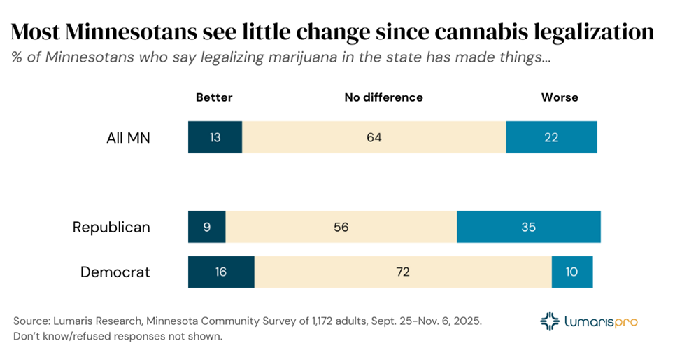 MN Republicans and Democrats agree: legal cannabis hasn't changed daily life. A statewide probability survey finds sharp divides on whether legalization is good.